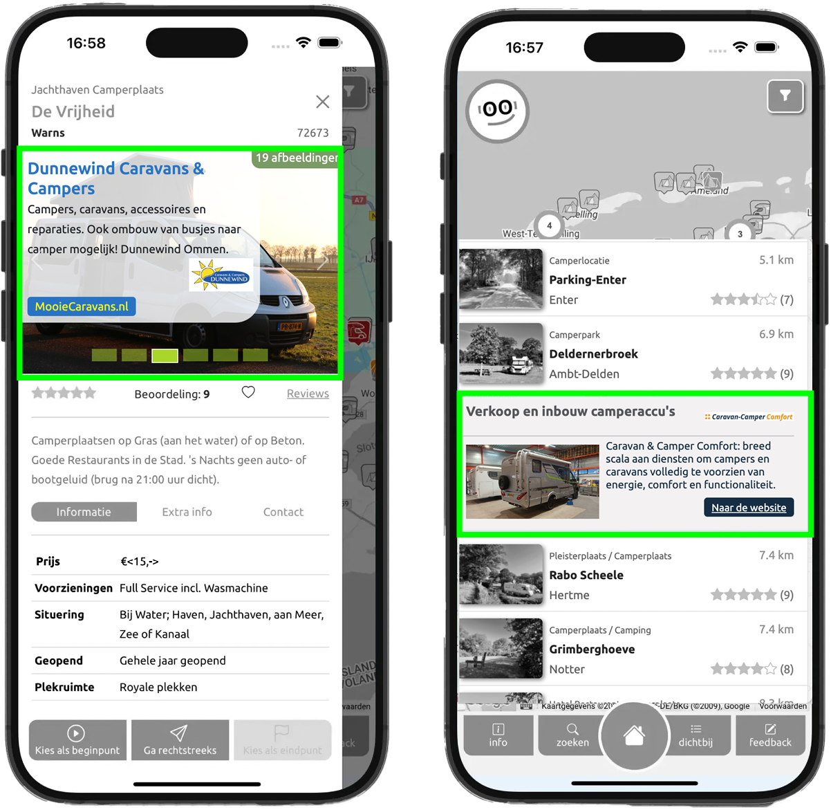 De advertentie moet wel campergerelateerd zijn en een relevante aanbeveling bieden voor