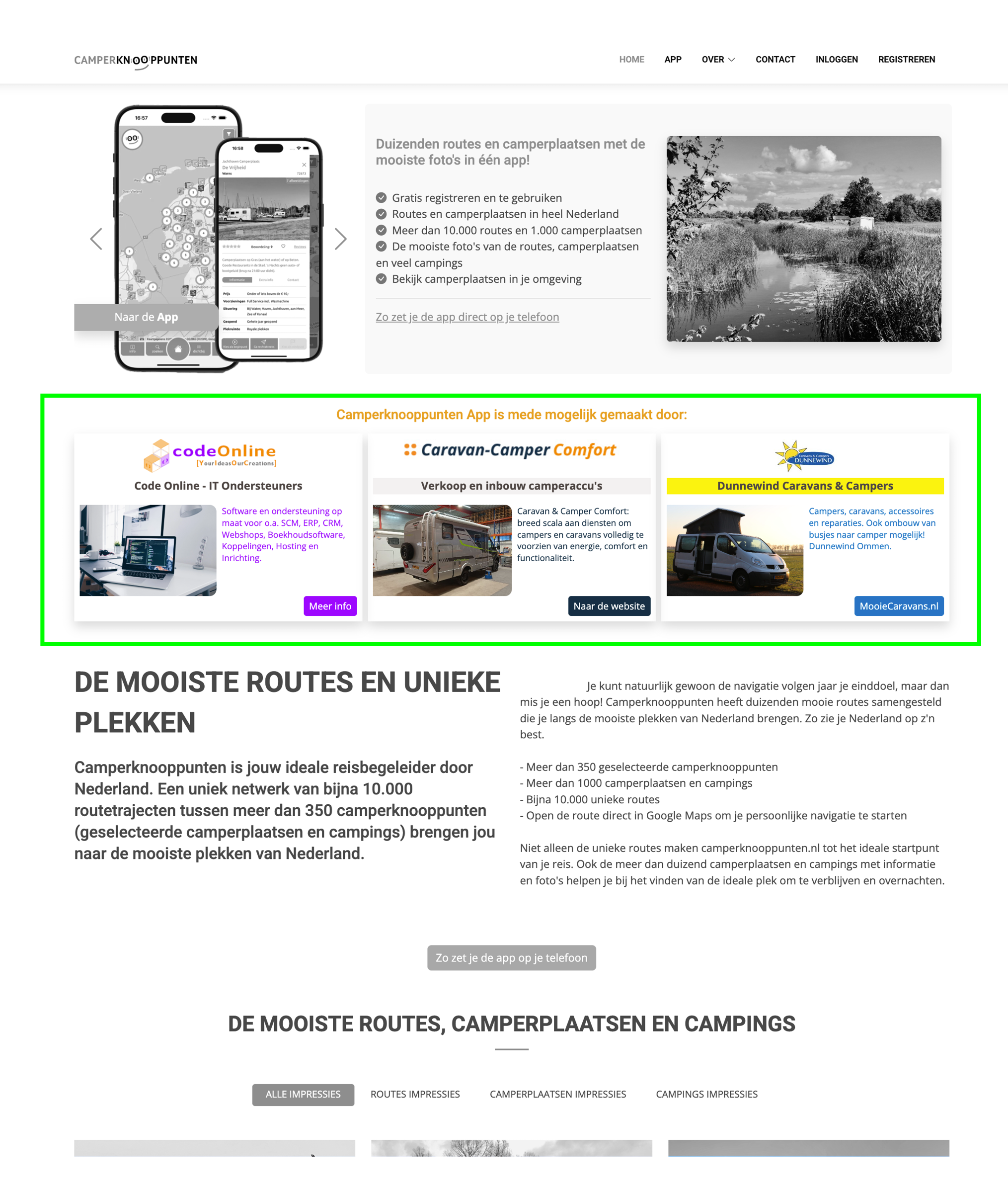 Elke maand bezoeken duizenden camperaars onze website. Omdat dit allemaal mensen zijn die